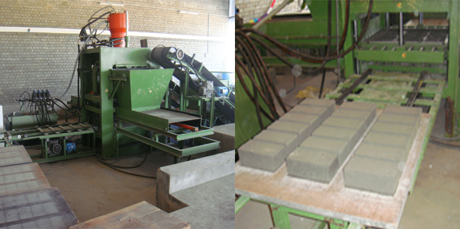 Pantype Mixer of required Batch Capacity is supplied along with the Plant to mix the Raw Materials like Fly Ash, LIME, GYPSUM, SAND OR STONE DUST (Cement), Water etc homogeneously. Sidewall & Bottom of the Pan Mixer is fabricated from Branded Mild STEEL Material with specific measurements.Importance to the guarantee to the life of the machines and Easy maintenance. Make Crompton gears and motors Crompton / kirloskar / Siemens. Fly ash Mixing: Standard steel scrapper with Heavy rollers. Fly ash mix 500 kg Batch Capacity of mixer –fly ash 40% , stone dust/ sand 40% ,lime 10%-15% ,gypsum 5%,cement 2.5%,water 10% India‘s first design to avoid manual discharge mechanical door open to hydraulic door open.