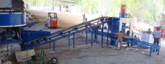 Pantype Mixer of required Batch Capacity is supplied along with the Plant to mix the Raw Materials like Fly Ash, LIME, GYPSUM, SAND OR STONE DUST (Cement), Water etc homogeneously. Sidewall & Bottom of the Pan Mixer is fabricated from Branded Mild STEEL Material with specific measurements.Importance to the guarantee to the life of the machines and Easy maintenance. Make Crompton gears and motors Crompton / kirloskar / Siemens. Fly ash Mixing: Standard steel scrapper with Heavy rollers. Fly ash mix 500 kg Batch Capacity of mixer –fly ash 40% , stone dust/ sand 40% ,lime 10%-15% ,gypsum 5%,cement 2.5%,water 10% India‘s first design to avoid manual discharge mechanical door open to hydraulic door open.